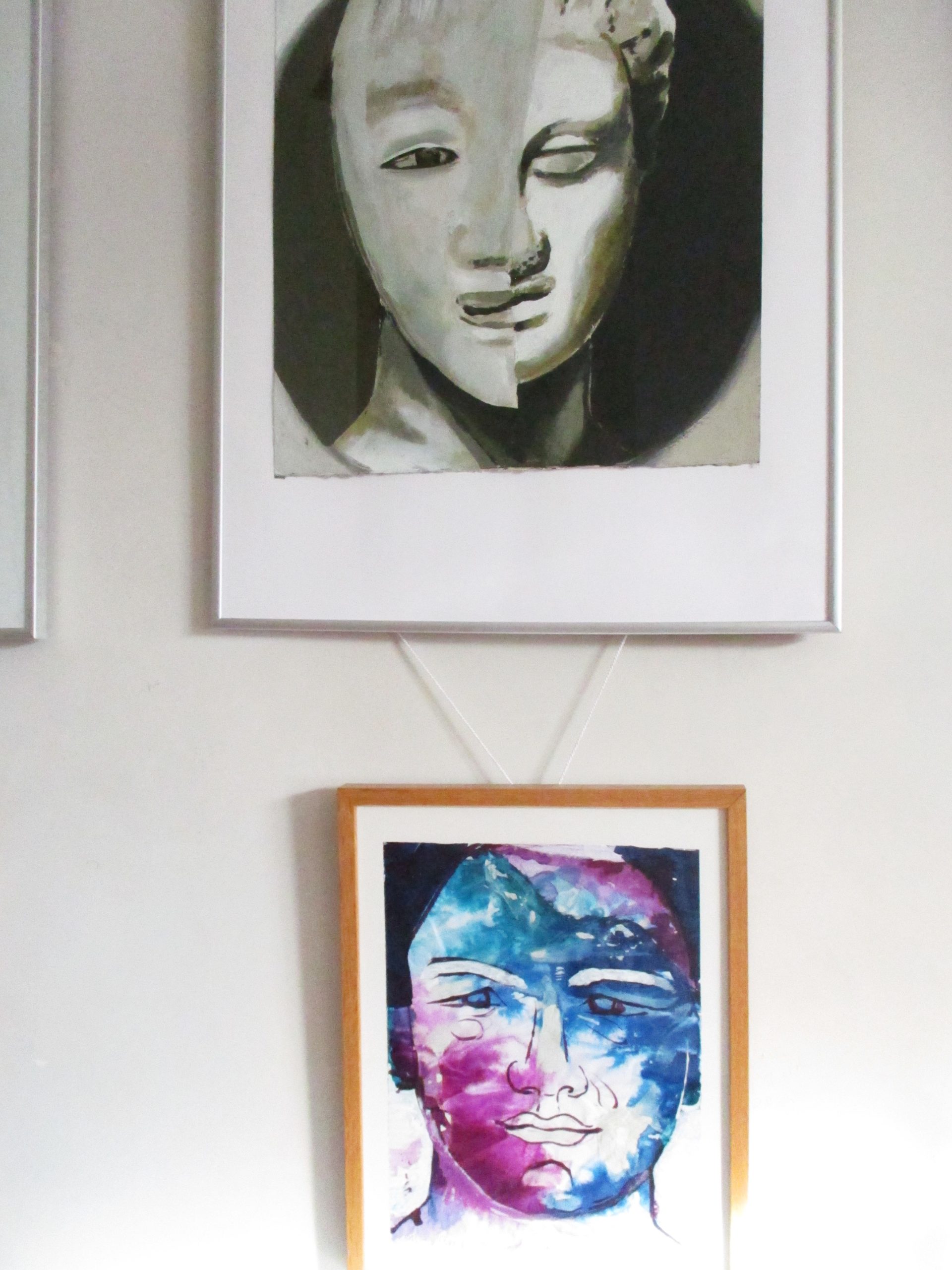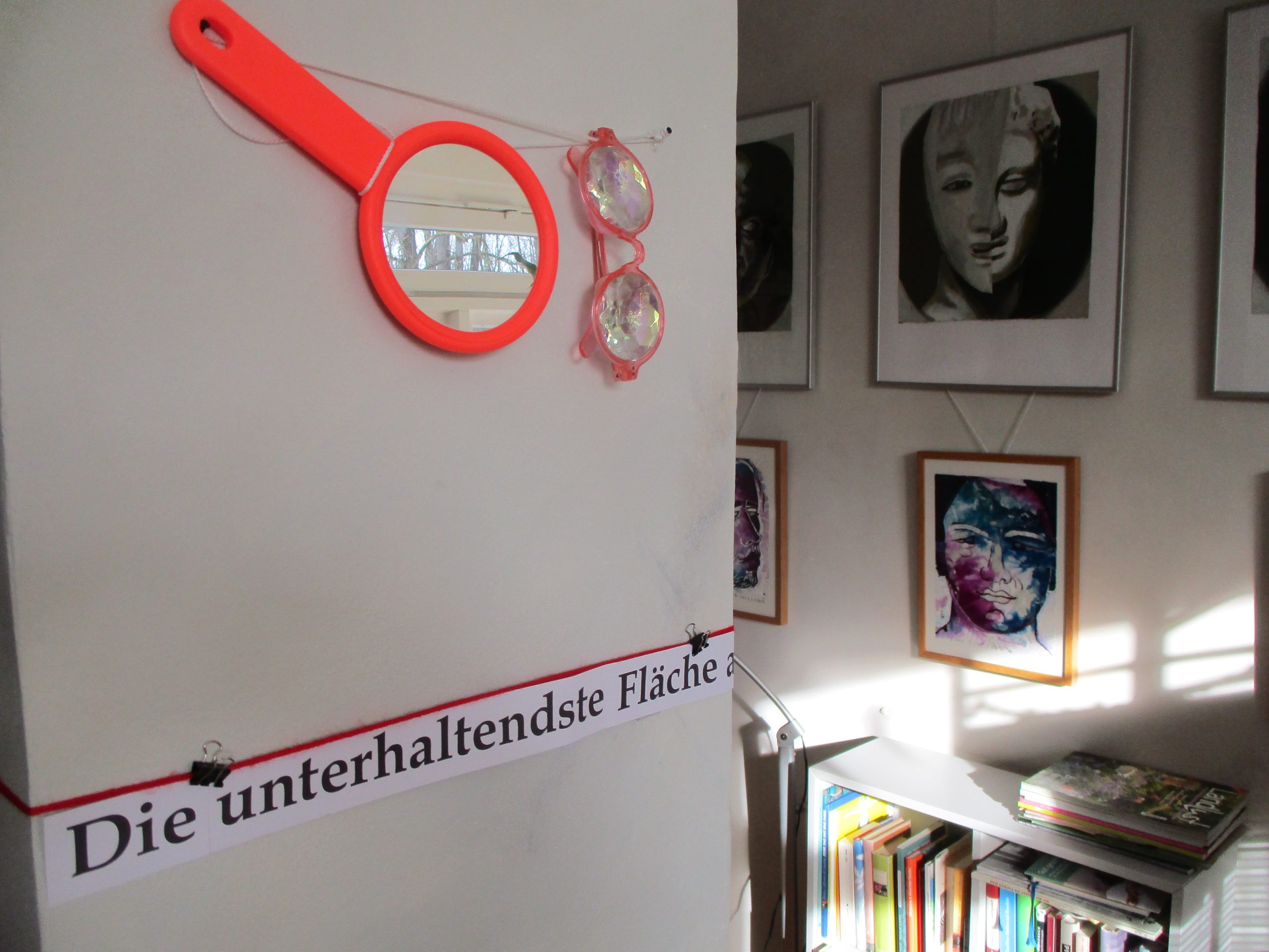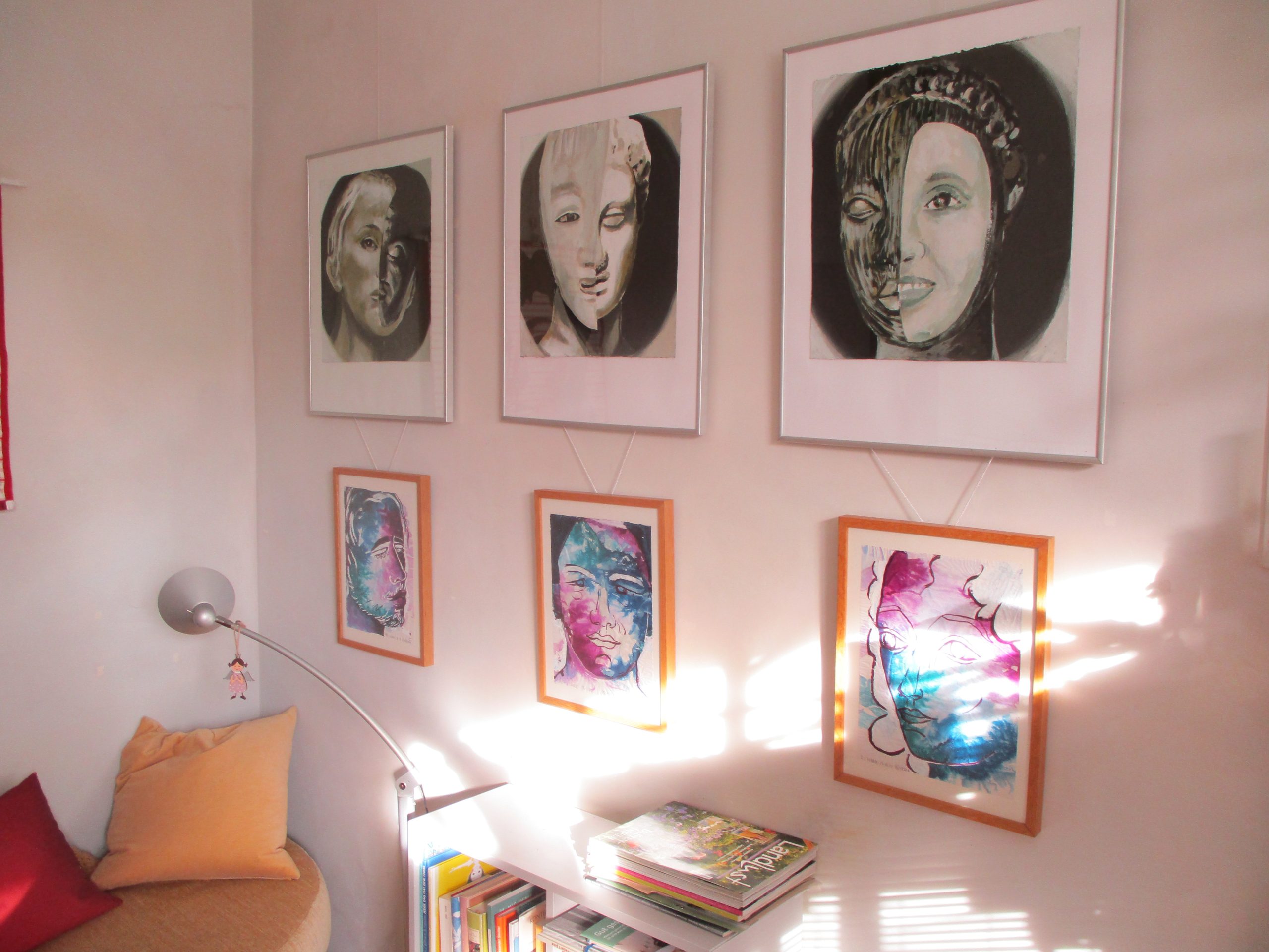 In den angehängten Photographien können sie eine neue Praxisfoyer-Ausstellung sehen. Es macht Spaß, sich auf den/die kleinen und unruhigen Raum(bedingungen) immer wieder eine neue „Hänge-Strategie“ auszudenken und da ich tolle Hilfe beim Hängen habe, ging es „lustig von der Hand“.
